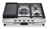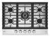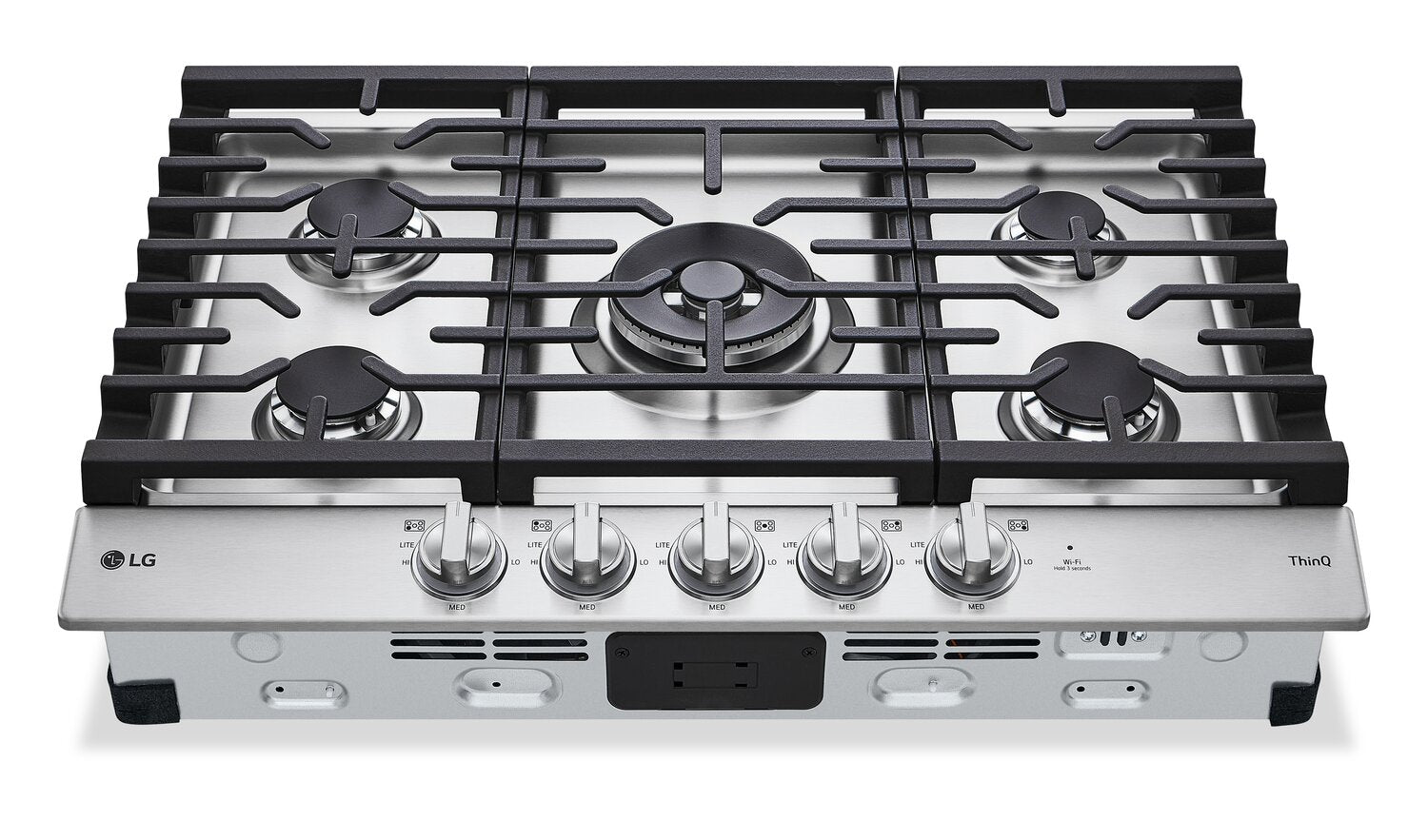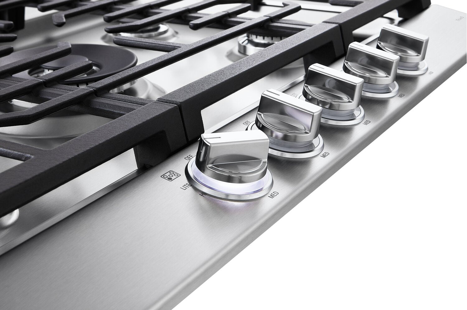 Five Sealed Gas Burners: UltraHeat 22,000 BTU Dual Burner: Removable Cast-Iron Griddle: White LED Illuminated Knobs: Continuous Cast-Iron Grates: EasyClean Stainless Steel Cooktop: Auto-Reignition: Smart Capabilities: |