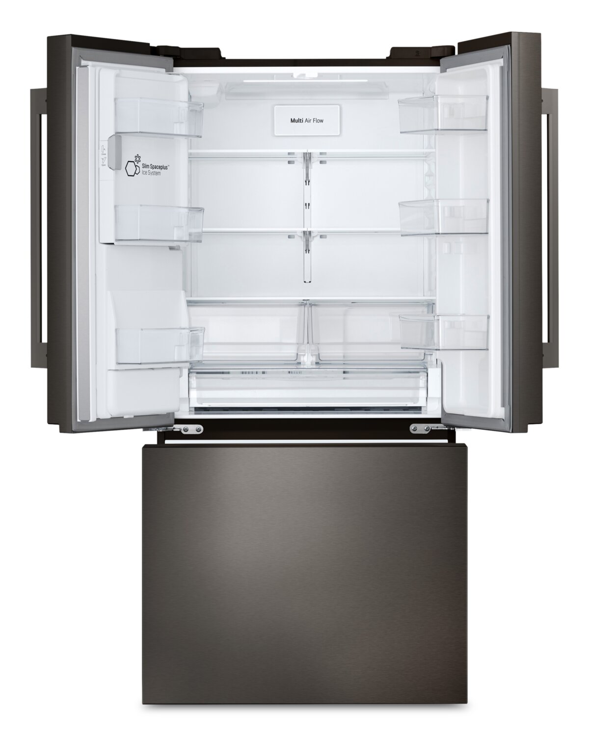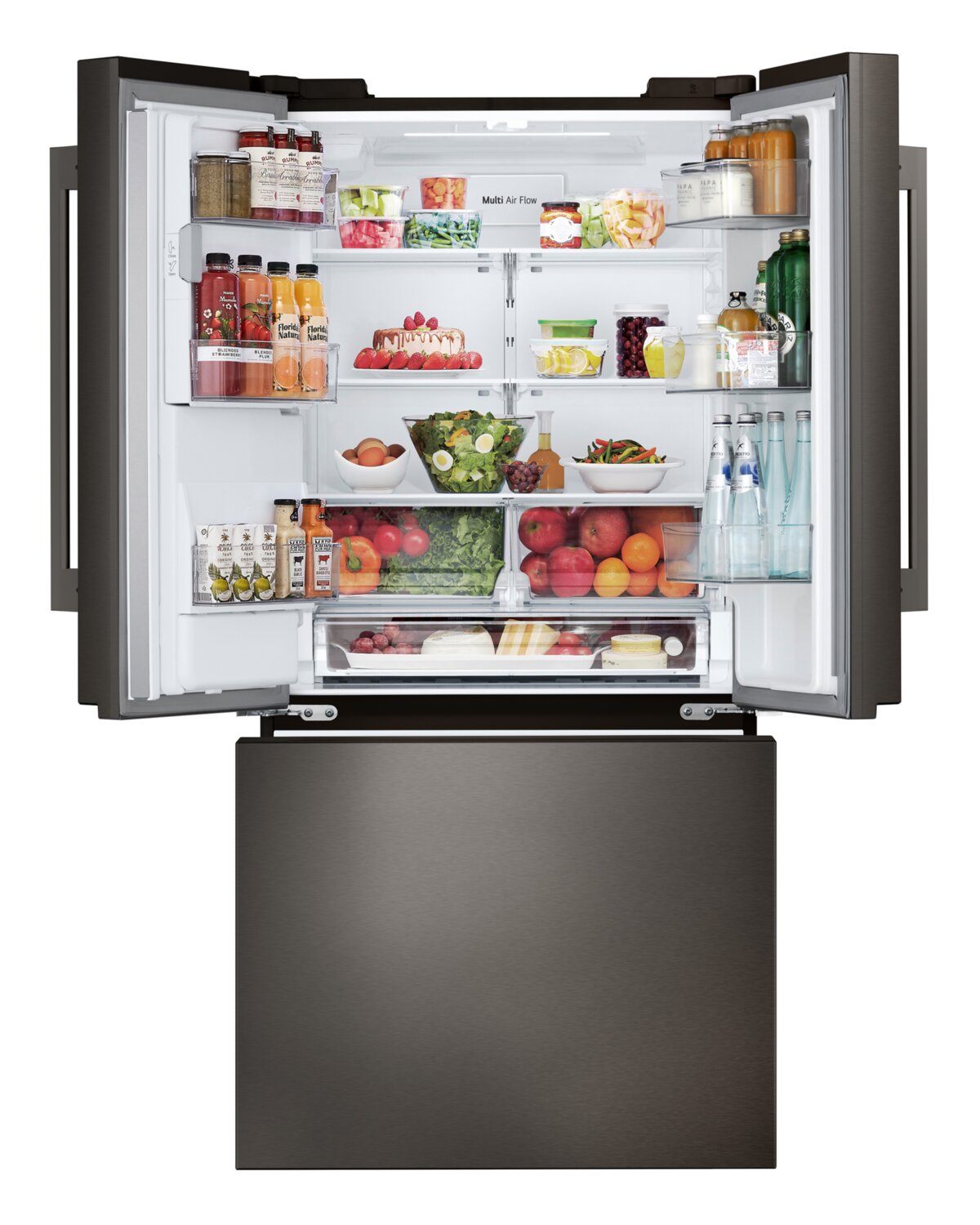 External Ice and Water Dispenser: PrintProof Stainless Steel: Smart Technology: Spacious Three-Door Design: Adjustable Shelving: Linear Compressor: |