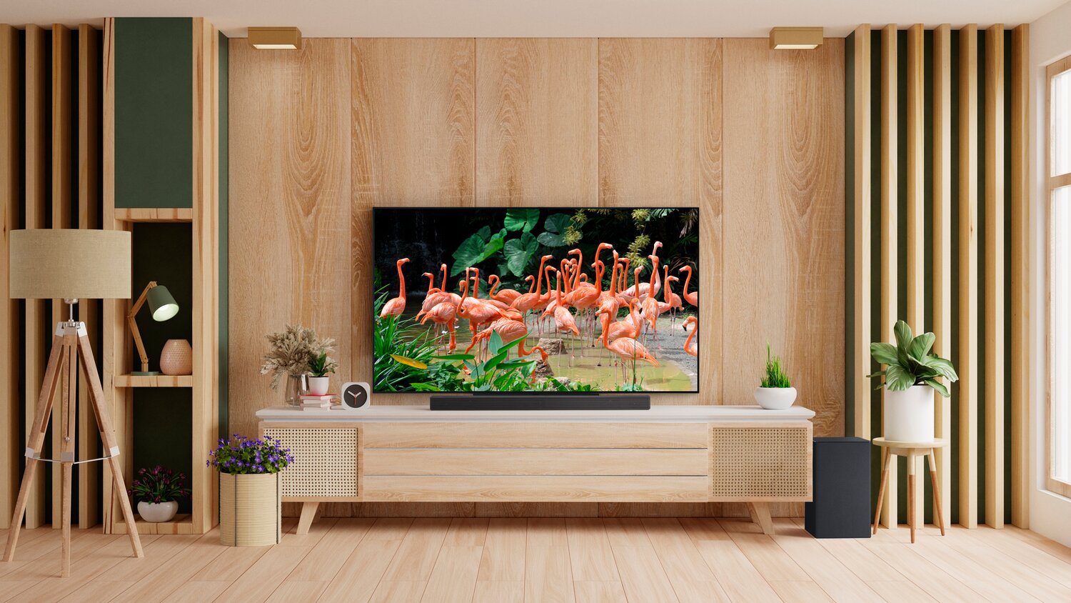 Enjoy a whole new sound experience with this soundbar from LG. Designed to pair with LG OLED C series TVs, it features incredible audio technology and a variety of Dolby settings for the best in immersive, theatre-like sound. Content will be intelligently analyzed for a truly hypnotic feel with optimal sound output. Plus, stream music from apps like Spotify and control the bar with Amazon Alexa. The soundbar will sit beautifully on you TV stand or mounted under your TV thanks to the exclusive included wall mounting bracket.