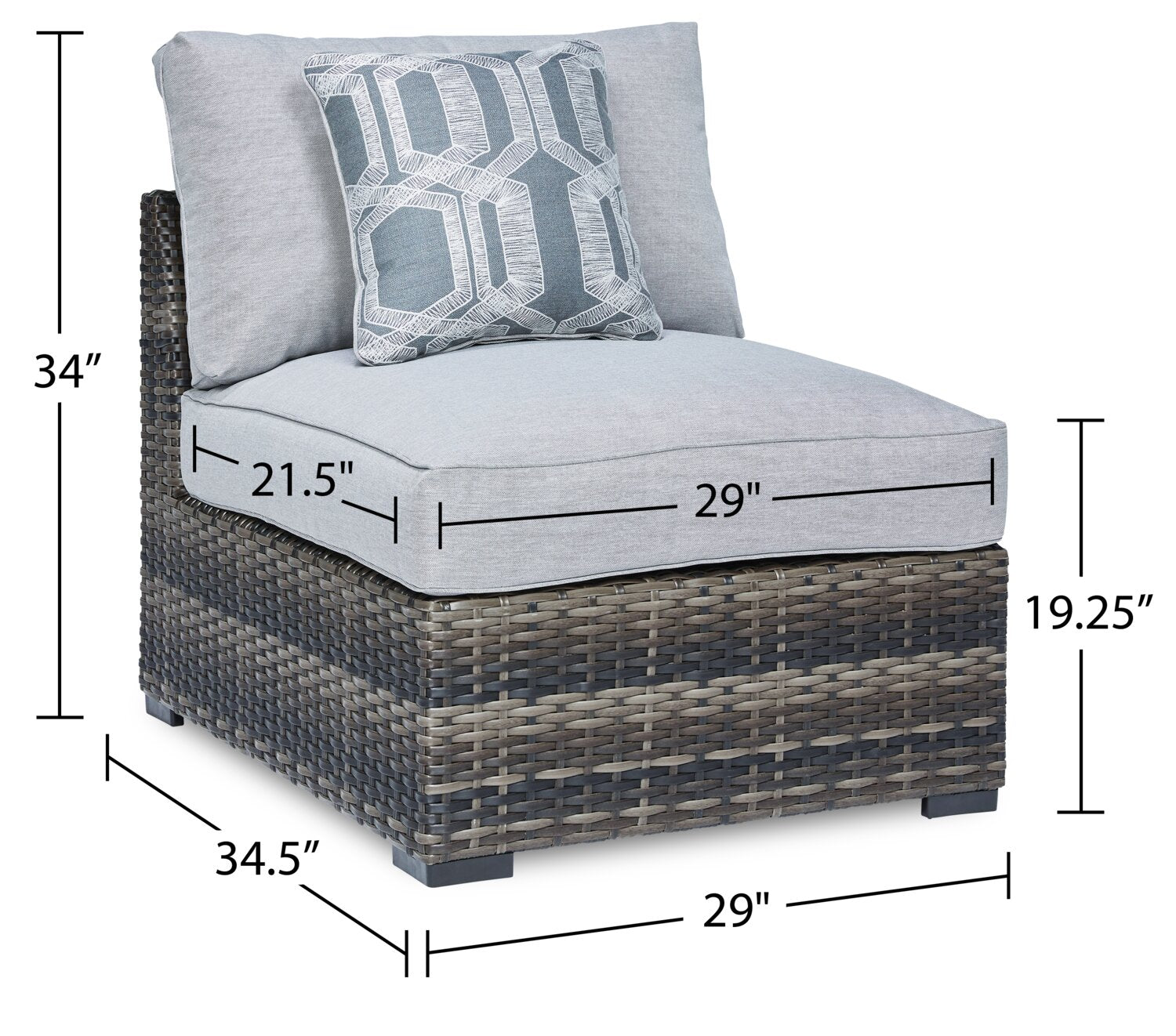 Width: 29" (73.7 cm) Height: 34" (86.4 cm) Depth: 34.5" (87.6 cm)