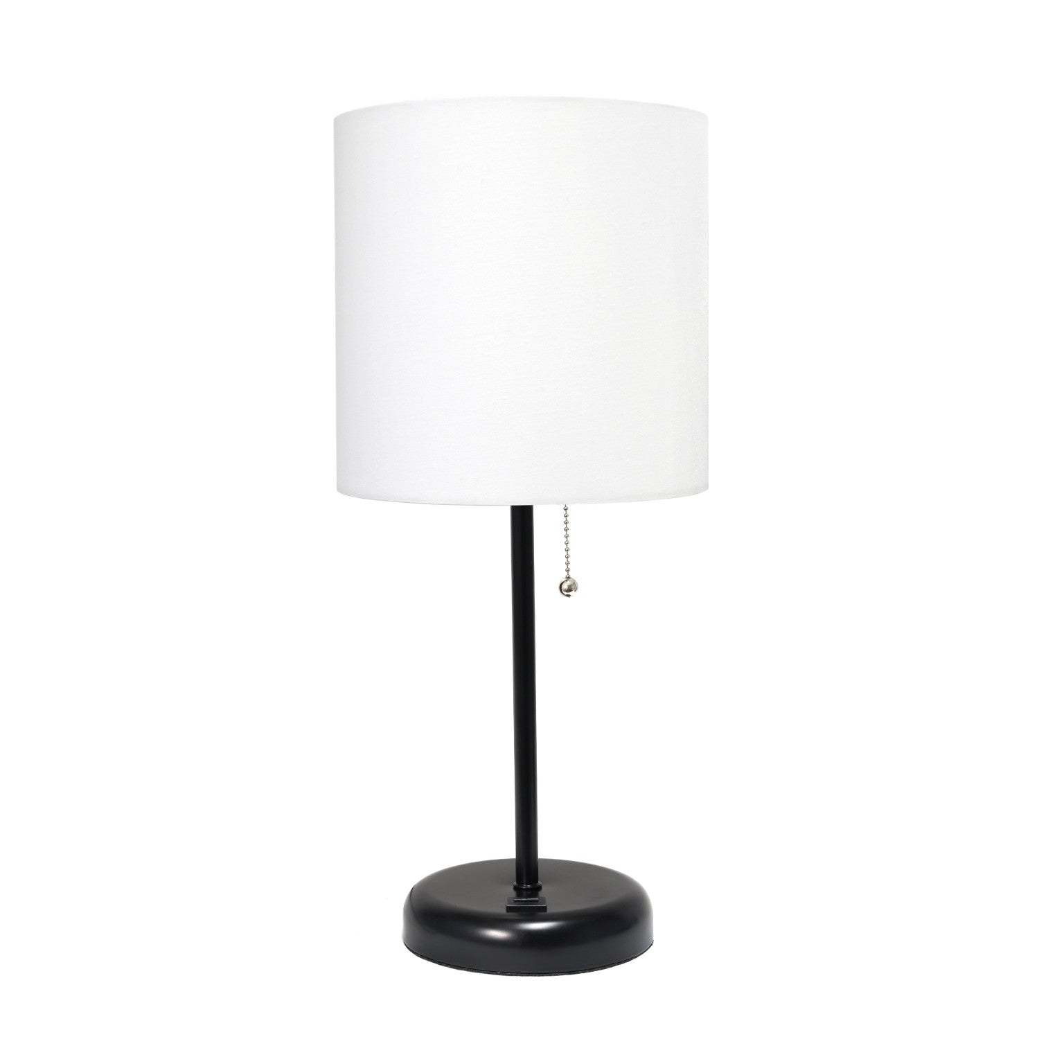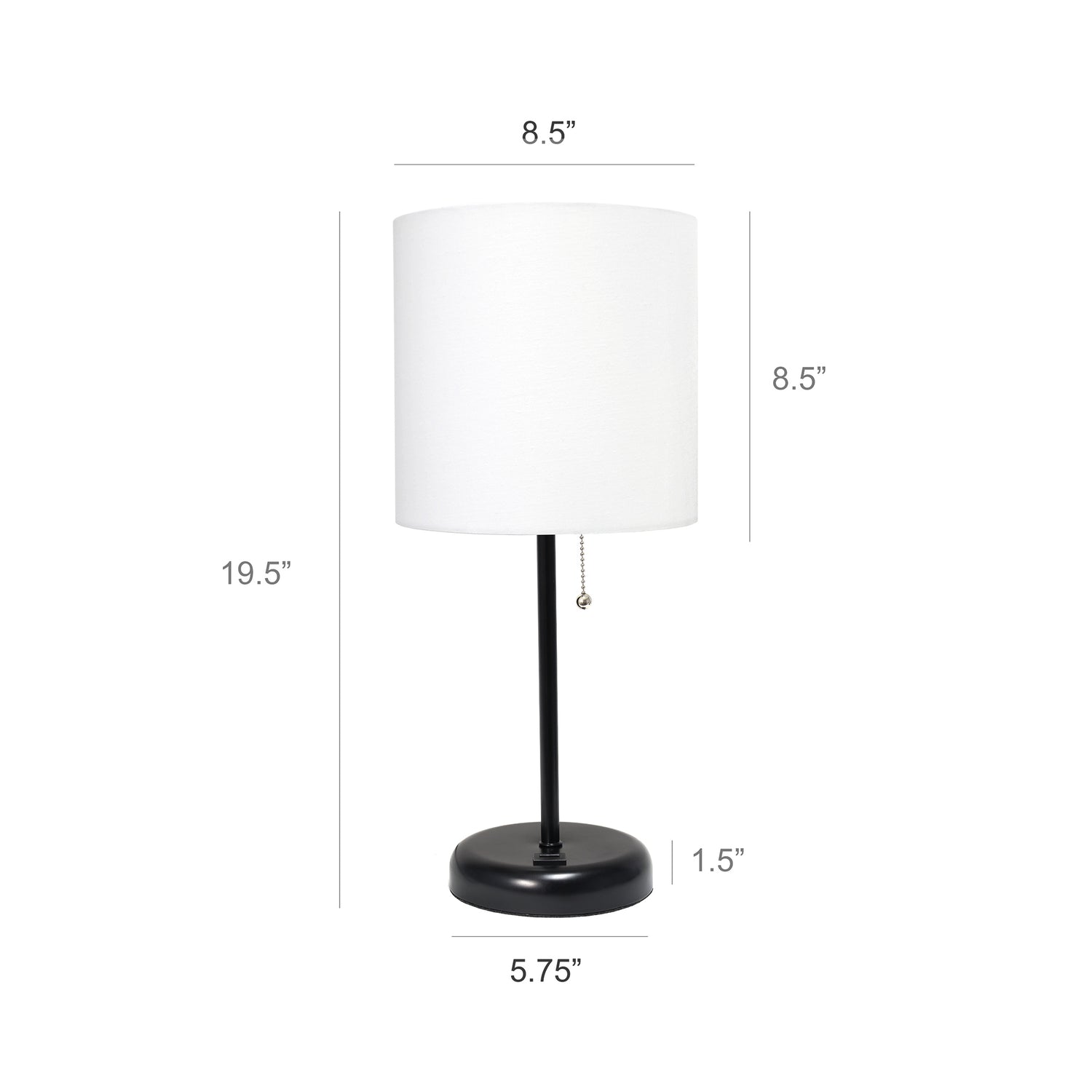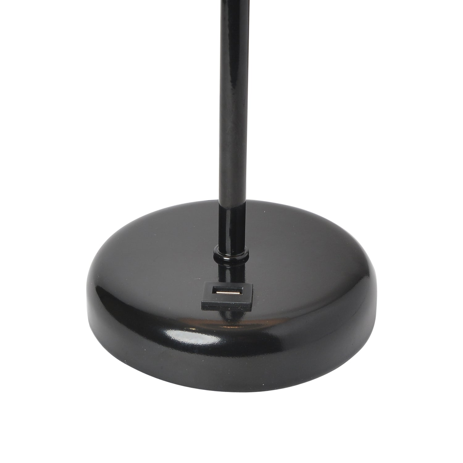 This fun and fashionable lamp features a black base and a fabric shade. It comes equipped with a USB seated in the base for use to charge mobile phones, handheld games, tablets, and other small electronics. This lamp will add a fabulous flair to any room. Perfect for bedrooms, kids and teens, college dorms, nurseries, or fun offices!