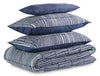 | Accent Details | Self-piping on the pillowcases and tack and jump quilting on the comforter. |