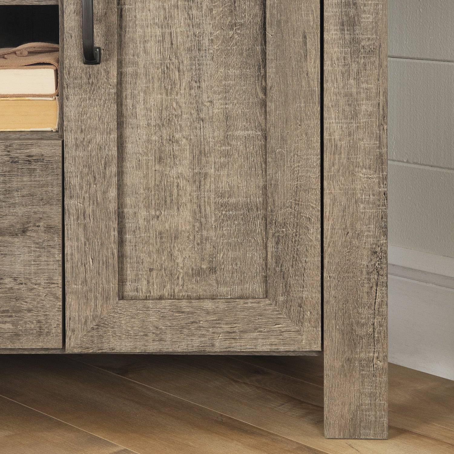 A corner tv stand. This tv stand was specially made to be placed in the corner of a room. It’s ideal for open areas, which often lack walls to put a tv stand against. This piece will get rid of that problem! Farmhouse inspiration with its large moldings and antique look, this small tv stand reminds us of pretty country houses. But the metal handles and straight lines make this furniture look quite modern too… so it can fit with many decorating styles. Love it! An oh-so-practical piece one word: organization. This tv stand is structured to make your day-to-day life easier. The drawer is ideal for storing movies or video games, while the open spaces can be filled with all your consoles… and the surface can hold a tv of up to 48 inches. You also have two side spaces at your disposal for added storage. This tv stand is sure to make your movie nights even more enjoyable!