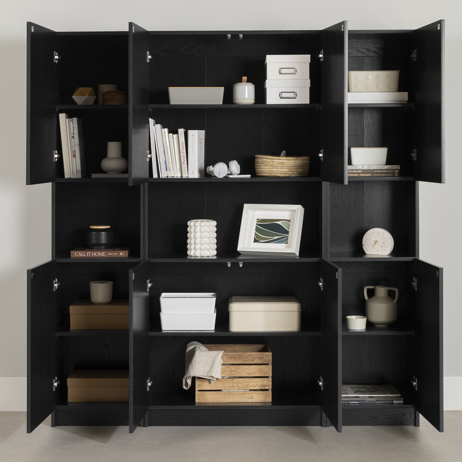 Elegant modules. This set of 3 bookcases creates a fine blend of simplicity and functionality. Inspired by contemporary design, each piece of furniture in this collection is refined, thanks to its handleless doors and open compartment in the center. Showcasing your favorite decorative accessories, photos and knick-knacks has never been easier. In all, this set includes 6 removable shelves that can be moved at will, supporting up to 25 lb. Push-to-open doors make it easy for the whole family to use. A versatile storage solution