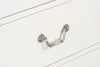 | Hardware | Nickle pulls with crystal accents decorate the fronts of the drawers. |
