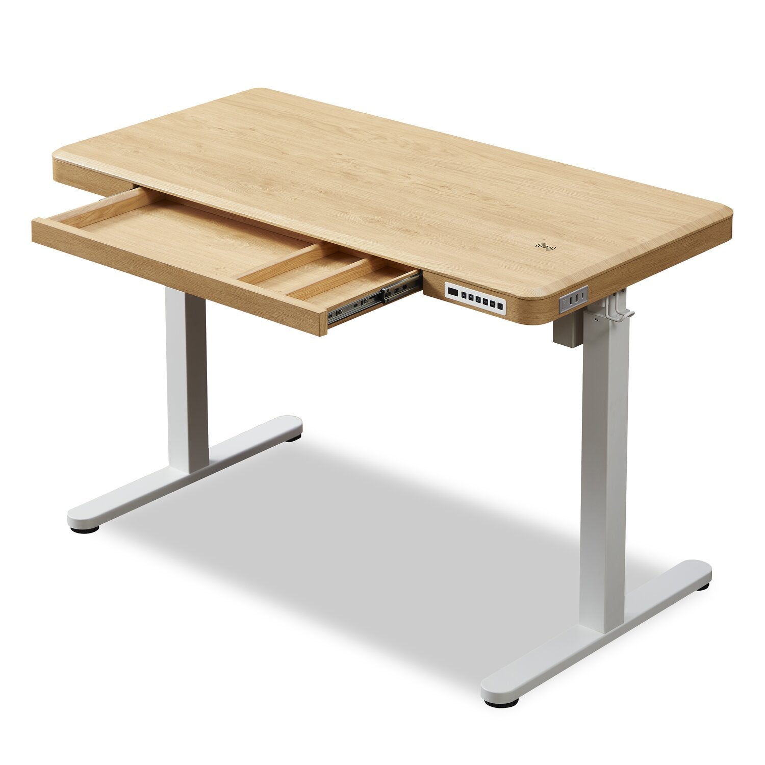 Experience ultimate convenience and efficiency in your office with this Loft height-adjustable desk. This sleek and modern desk offers wireless charging and multiple USB ports, keeping you fully charged throughout the day. Its pencil drawer lets you keep your keyboard, pens and notebooks close at hand, while two side hooks are perfect for placing your headphones and extra cables. Plus, the power lift levelling system ensures a seamless transition between sitting and standing. Increase productivity and streamline your workspace with the Loft.