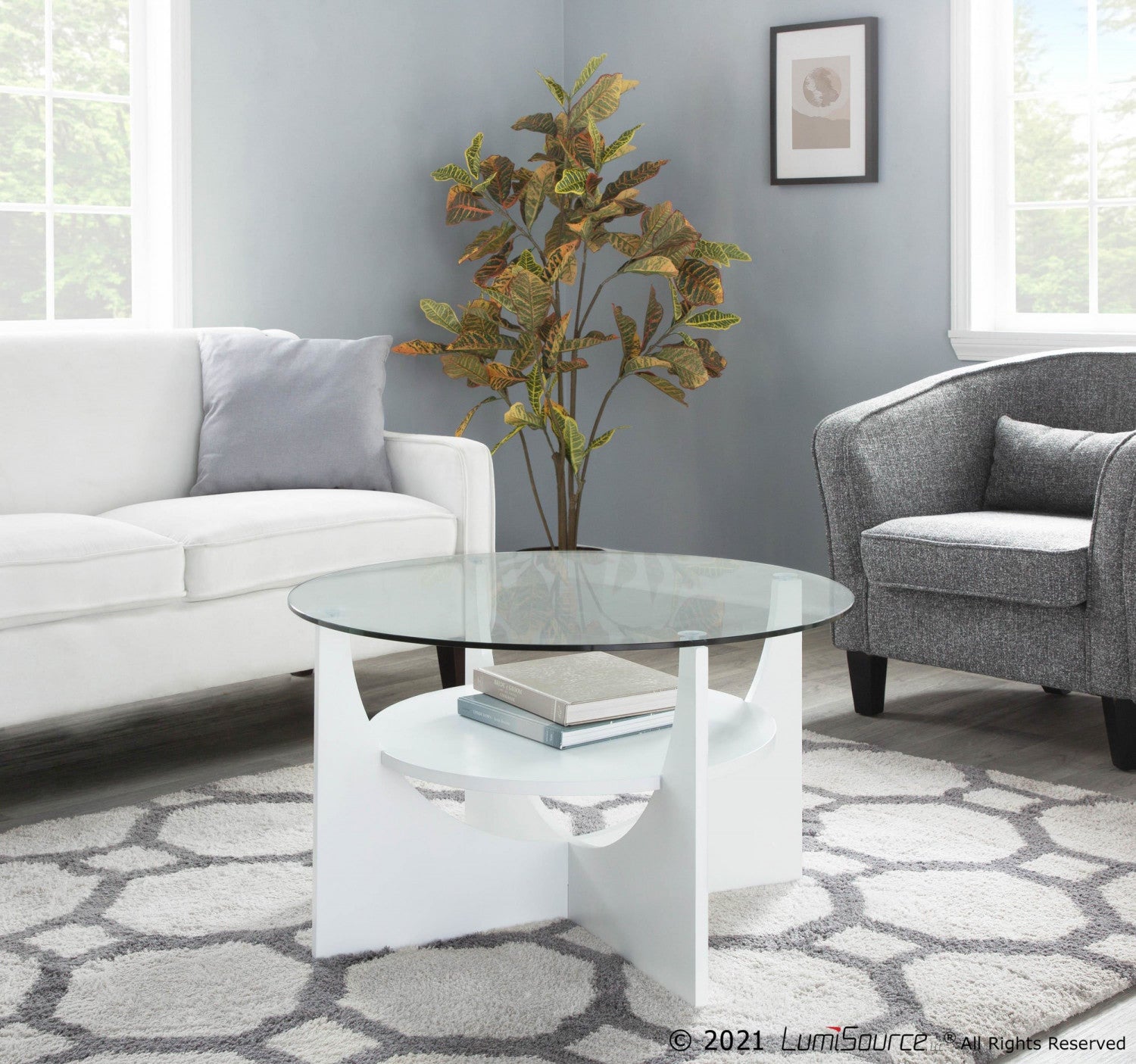Create a well-rounded living space with the U-Shaped coffee table. Peer through the circular glass table top to the seemingly floating circular shelf below nestled between two overlapping U-Shaped bases. Add this unique piece to your home today!