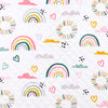 | Pattern | Features a pattern with rainbows, suns, clouds and hearts. |