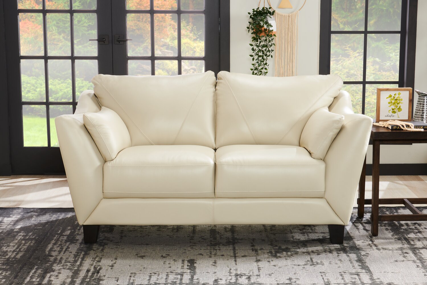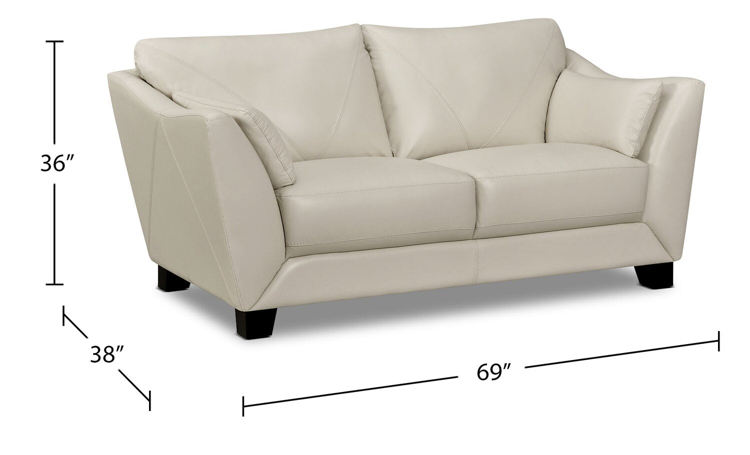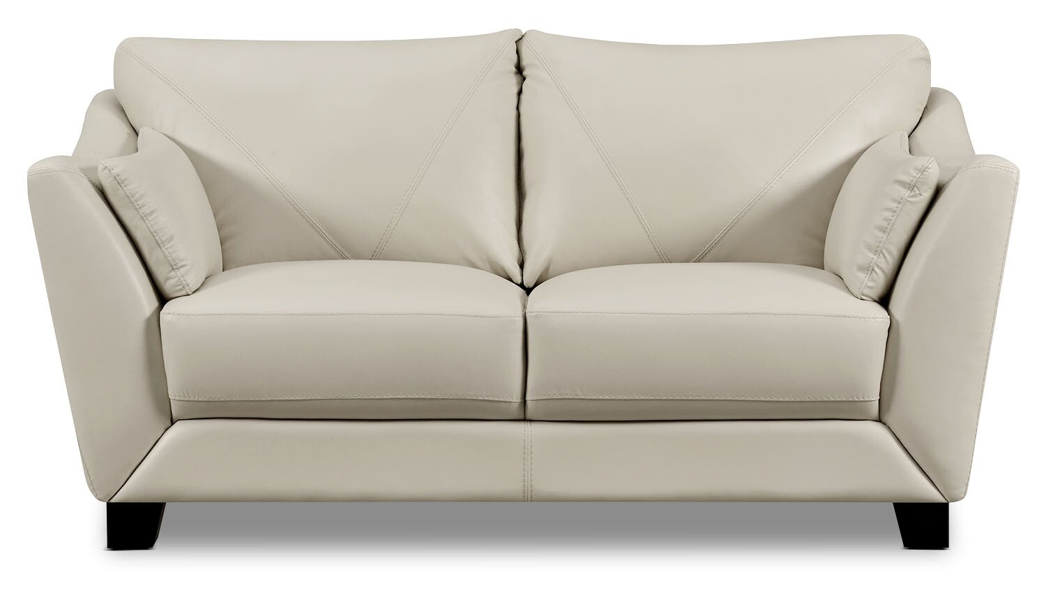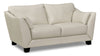 Take a seat on this elegant Lusso genuine leather loveseat, and experience true luxury in your own home. Each seat and back cushion is teeming with thick and comforting high-density foam, allowing you to truly relax on the deep seats after a long day. Made with off-white leather, the seating area features V-shaped stitching to echo the angled loveseat arms. Plus, the solid wood and engineered hardwood frame provides a reliable base for entertaining your guests.