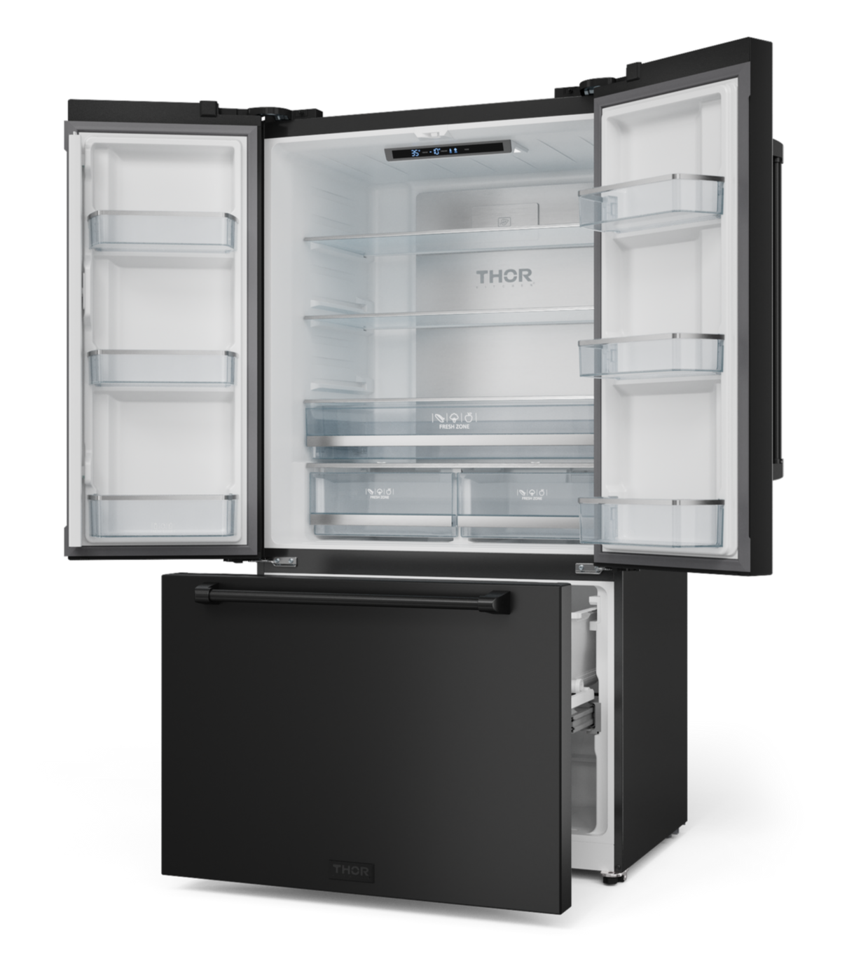 This Gordon Ramsay Collection refrigerator by Thor Kitchen lets you experience superior freshness in style. With advanced cooling technology, a spacious interior capacity and customizable features, this refrigerator ensures your ingredients stay at peak freshness, for peak flavour. Designed for durability and efficiency, it brings top-tier performance and sleek style to your kitchen.