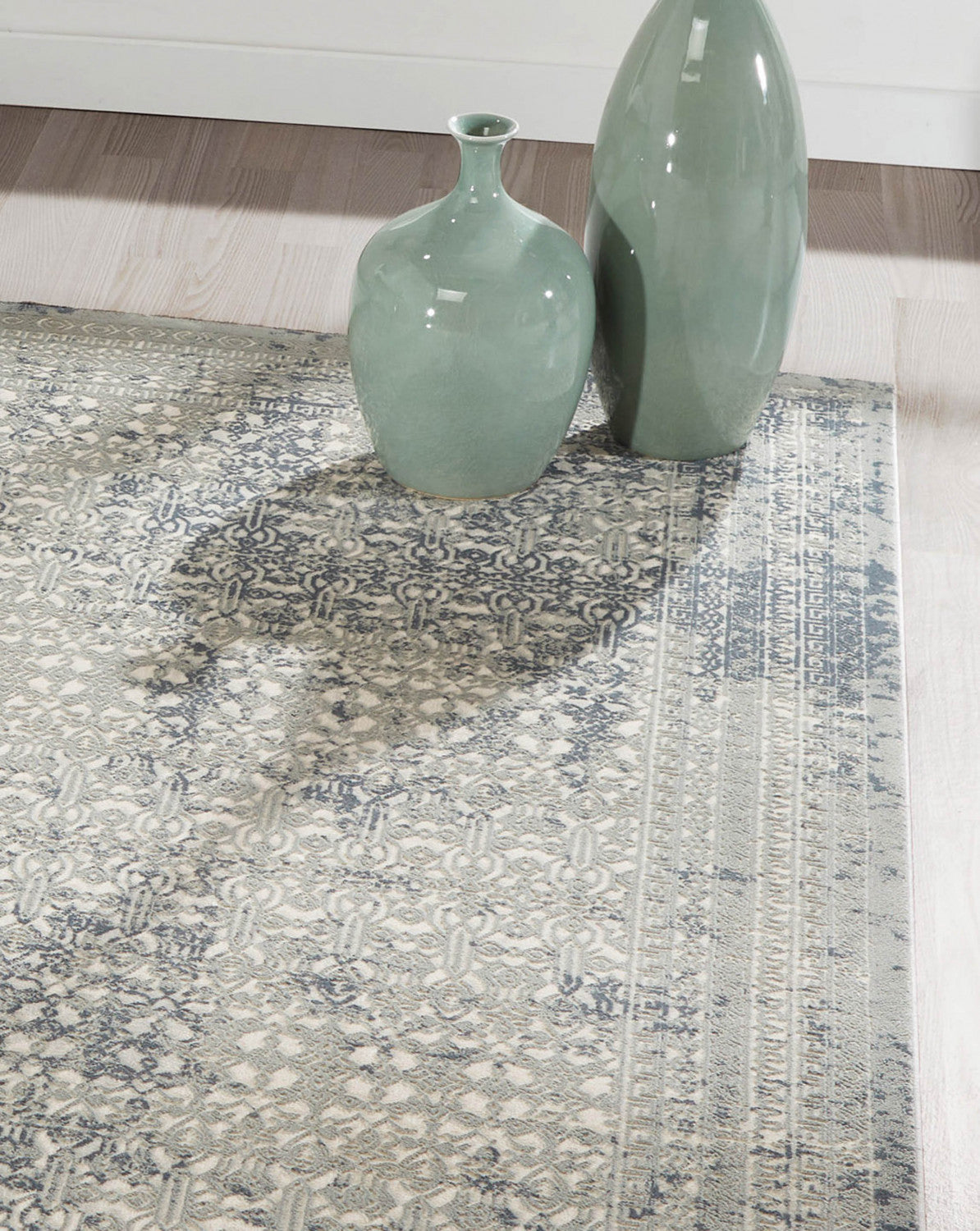 Get swept up in the vintage style of this traditional area rug. The ornamental rug design is resplendent in classical design references with a sage green palette that plays with color saturation and an all-over pattern that implies antique influences. Resilient synthetic threads make this durable floorcovering a purposeful accent for high-traffic areas of the home.