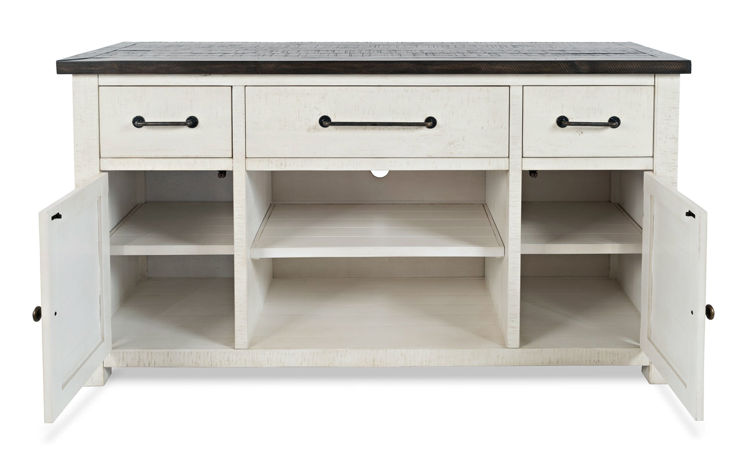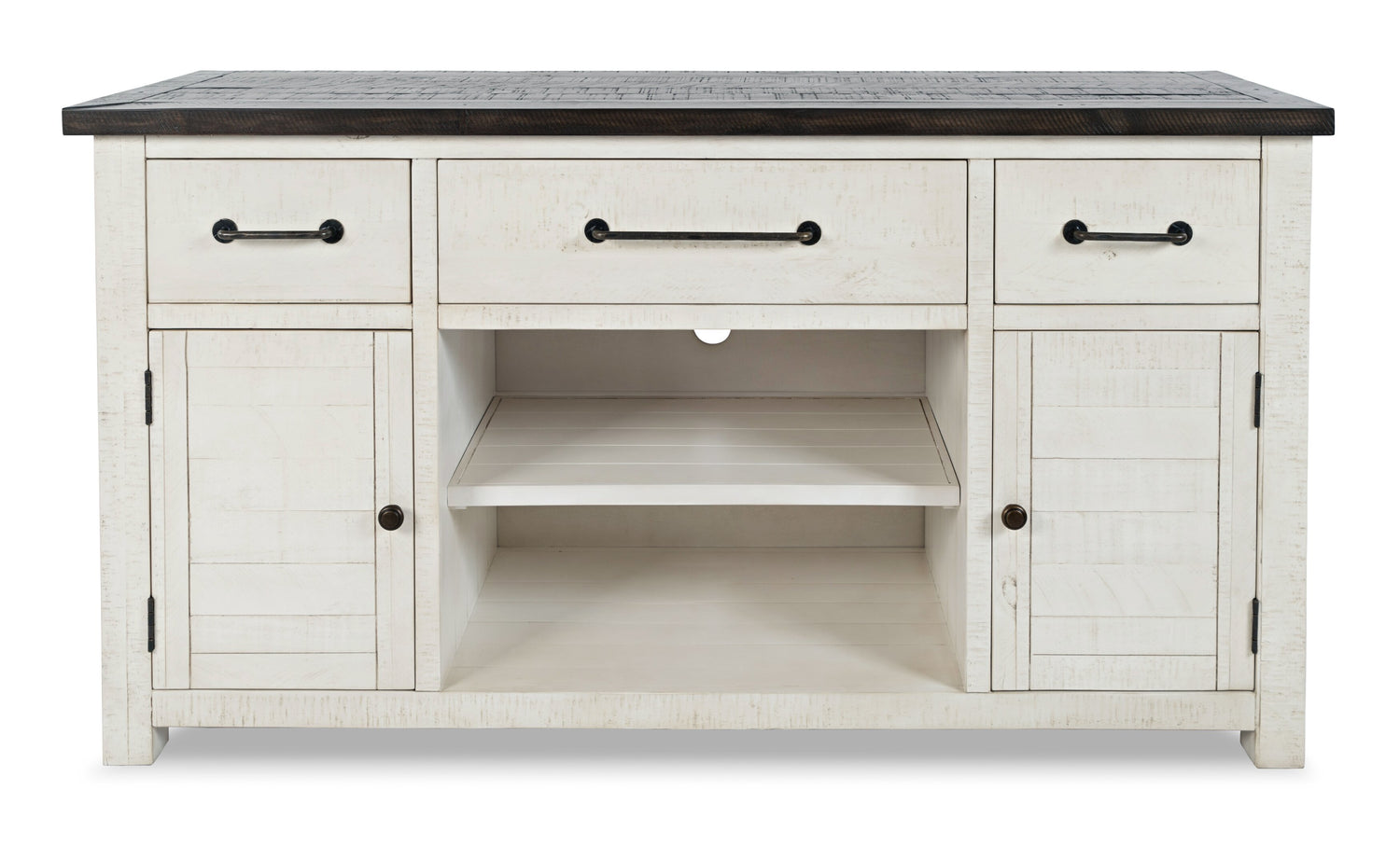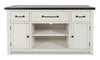 | Accent Details | Aged metal hardware gives a slight industrial edge to this entertainment centre. |