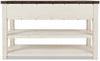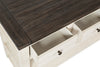 | Accent Details | Black metal handles give an industrial edge to this sturdy piece. |