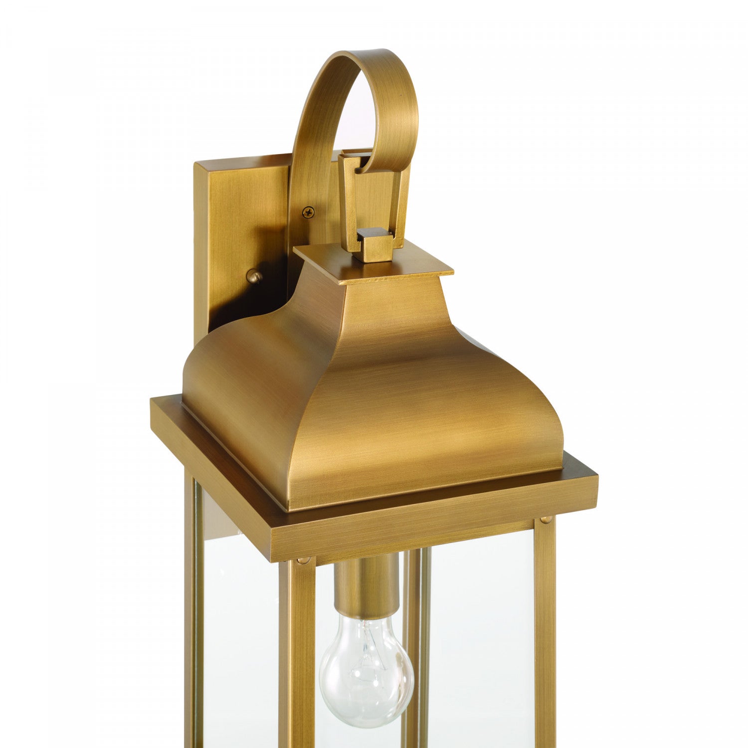 From the madrid collection, this outdoor wall sconce exudes timeless charm with its weathered brass finish, evoking the romance of old-world craftsmanship. Its clear seeded glassware allows the light to shimmer beautifully, casting a warm, inviting glow. Traditional in design, its clean lines and graceful silhouette seamlessly enhance any outdoor setting.