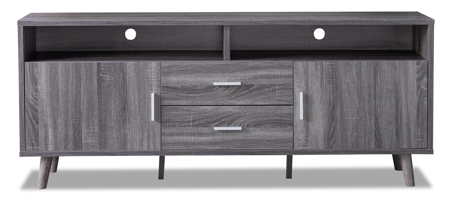 Create a living room look you'll love with the Malibu TV stand. Combining style and practicality, this TV stand makes a grand impression while providing plenty of space to decorate with your own panache. Two drawers help hide cords and batteries, while two cabinets provide even more space for home essentials to help keep the room tidy. If you're ready to set the stage with your personal flair, bring this piece home and make it your own.