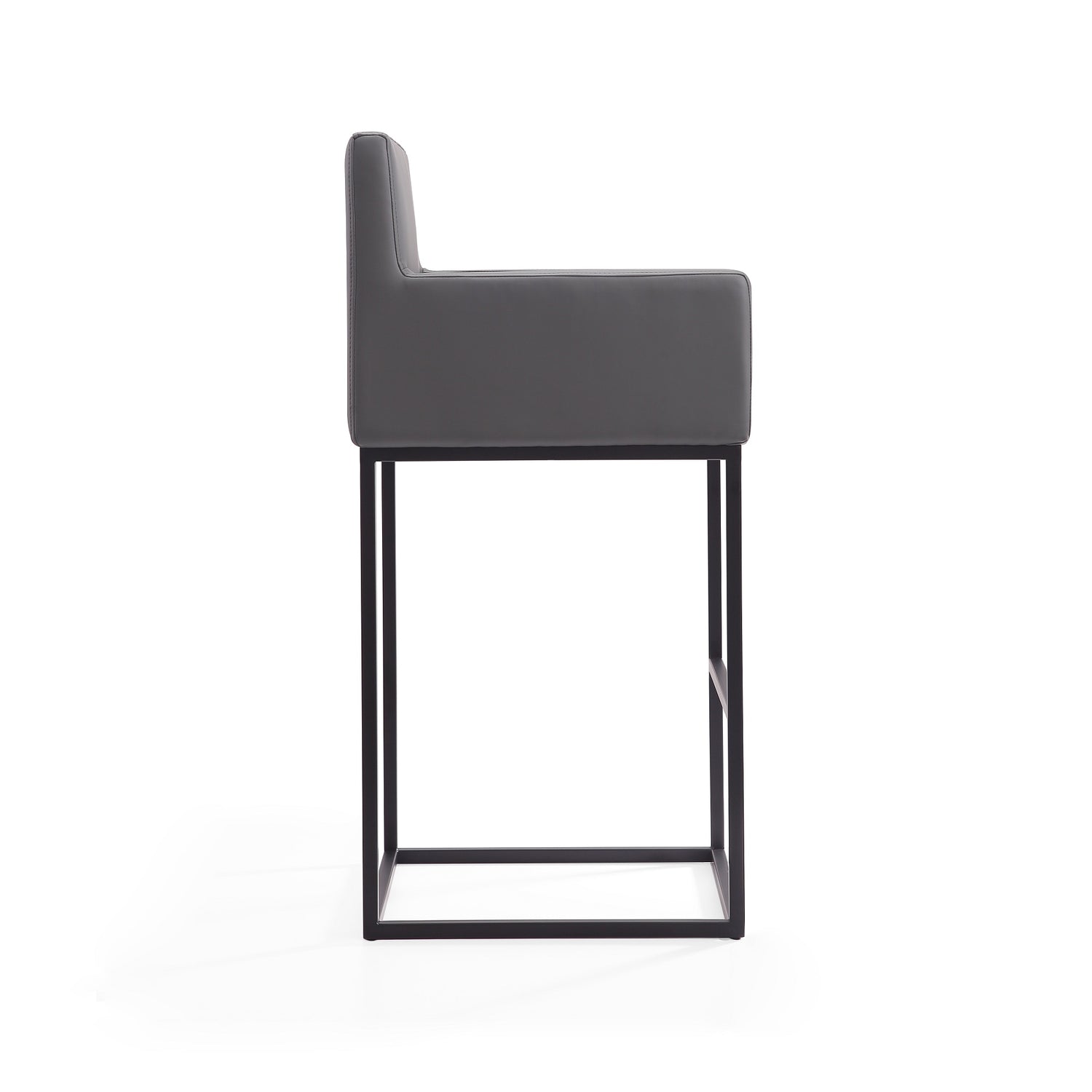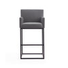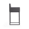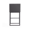 An eye-catching modern profile with a touch of glam. Genuine Leather wraps the cleverly shaped arms, back, and gently cushioned seat, resting on sturdy, slender metal legs. A footrest runs along the front of the stool, providing added comfort to this chic piece.