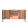 We redefined the average boring sideboard of the past. Meet the Beekman sideboard, with generous storage space quirky Mid-Century design, and expert craftsmanship, taking the dining room up a few notches in style. Cabinet doors on either side conceal a pair of shelves perfect for tucking away dinner dishes, wine glasses, or candlesticks. Three built-in drawers make it easy to store serving pieces, flatware, napkins, and more, for intimate dinner parties and entertaining all your favorite people. With its understated sophisticated vibe, this classic Mid-Century piece will instantly elevate a space with style and class.