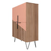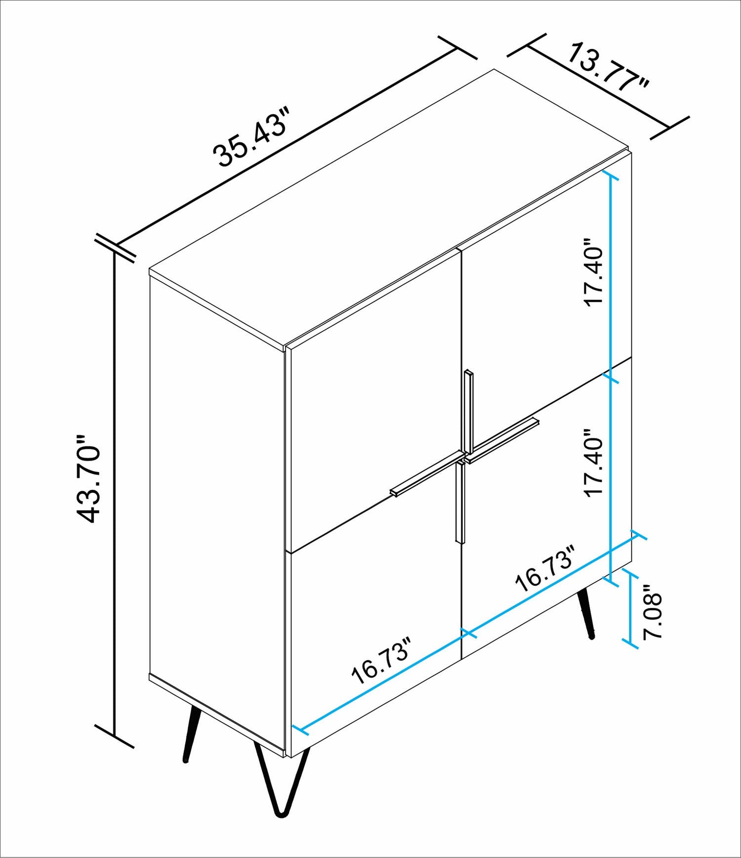 It's Mid-Century modern at its best. The Beekman cabinet offers storage and functionality in a stylish and compact way. Clean lines, splayed metal legs, and cool dark cabinet pulls conceal four shelves perfect for tucking away books, files, dinnerware, or family albums. It's super versatile, super functional, and easy to move from space to space with style that easily blends into apartment living space, home office, or dining area. Quirky design and neat craftsmanship are sure to make this piece a focal point and timeless mainstay.