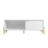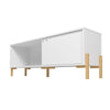 Classic in Mid-Century design with its streamlined silhouette and beautiful oak legs, the Bowery TV stand is understated and versatile in design without compromising on functionality. Plenty of lower storage space that is easily concealed with a sliding closure is perfect for media players, electronic accessories, book, and beyond. Add a plant or some framed photos up top to add warmth to your space.