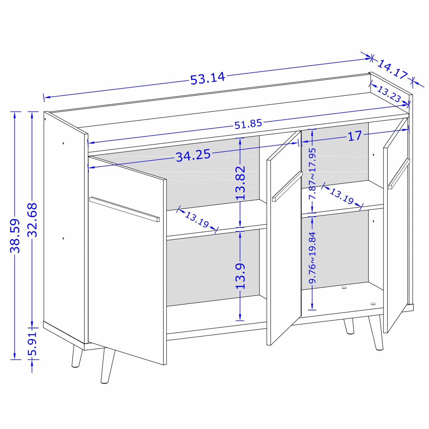 Width: 53.54" (136.0 cm) Height: 38.58" (98.0 cm) Depth: 14.53" (36.9 cm)