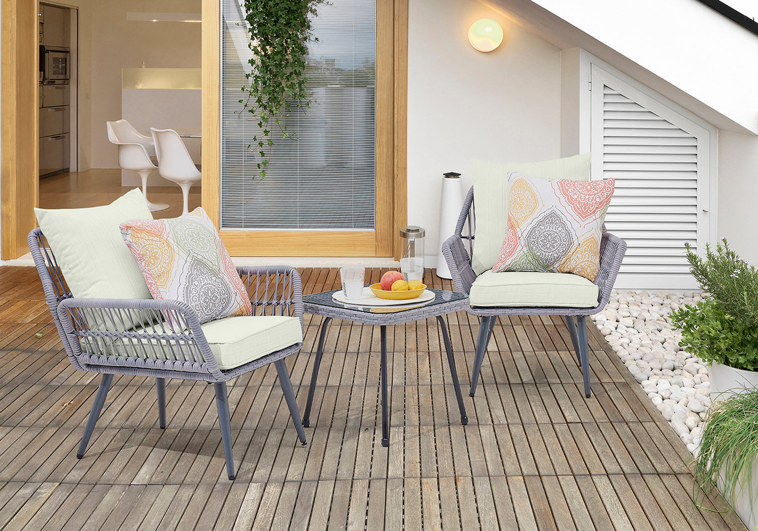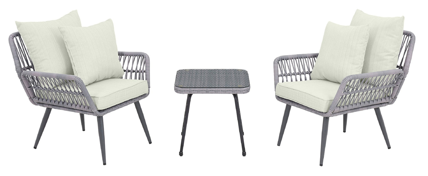 Crafted from durable rattan and strong iron, this two-person lounger set showcases style that's long-lasting in every way. Chic and comfortable, with removable cushions (that are also washable), this set is inviting and outdoor-friendly. A compact end table holds a glass of wine or a cup of coffee, so you can lounge poolside, by the firepit, or take time to enjoy nature. Create your perfect corner or coziest alcove for a space that's all your own.