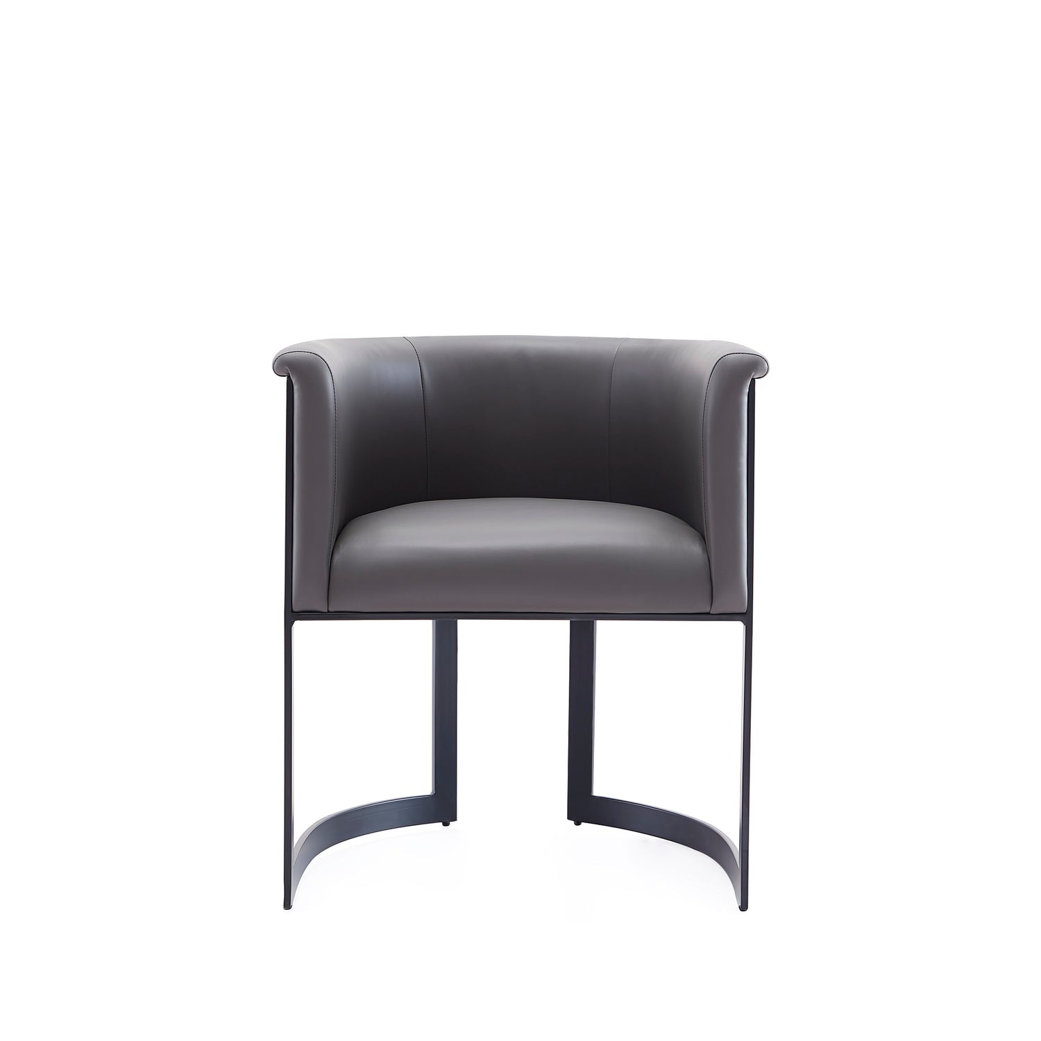 Made for entertaining, the Corso barrel style dining chair blends comfort and chic modern design. Whether it is a family dinner or a friendly event, your guests will feel right at home once they take a seat. With rich faux leather fully covering the plush seat, sides, and back, the Corso provides an inviting experience and a timeless appeal. The unique geometric frame contours the entire seat, creating a confidently durable space to kick back and relax.