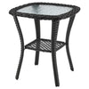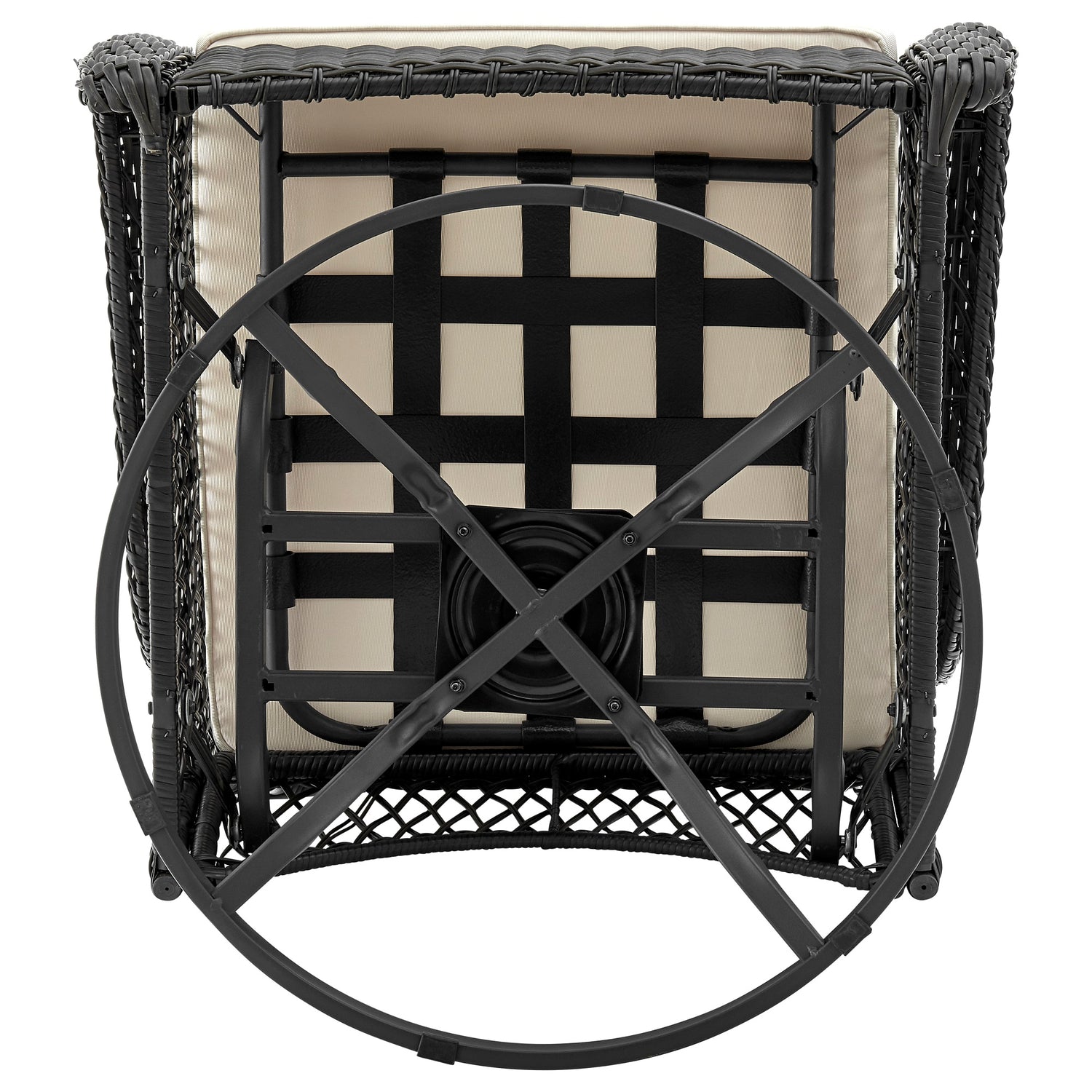 Catch up in comfort and style on the front porch or in the backyard with a pair of swivel chairs that instantly relax and entertain. Crafted from durable rattan and iron, these chairs come with removable (and washable) plush cushions that add all the cozy to your next firepit meet or family gathering. A tempered glass end table completes and complements the trio and instantly creates a decorative new alcove and elevated new backyard area to show off during the next outdoor get-together.
