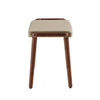 Easy living. Kick back and make yourself at home with this sleek cushioned ottoman. Crafted of solid ash with a rich walnut finish, its straightforward design has classic mid-century American appeal. The simplicity of form effortlessly complements a variety of chair styles, while its beautiful wood grain and textured upholstery make it a decorative accent all on its own. Its light weight and integrated handles make it easy to place it wherever you need it.
