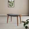 Easy living. Kick back and make yourself at home with this sleek cushioned ottoman. Crafted of solid ash with a rich walnut finish, its straightforward design has classic mid-century American appeal. The simplicity of form effortlessly complements a variety of chair styles, while its beautiful wood grain and textured upholstery make it a decorative accent all on its own. Its light weight and integrated handles make it easy to place it wherever you need it.