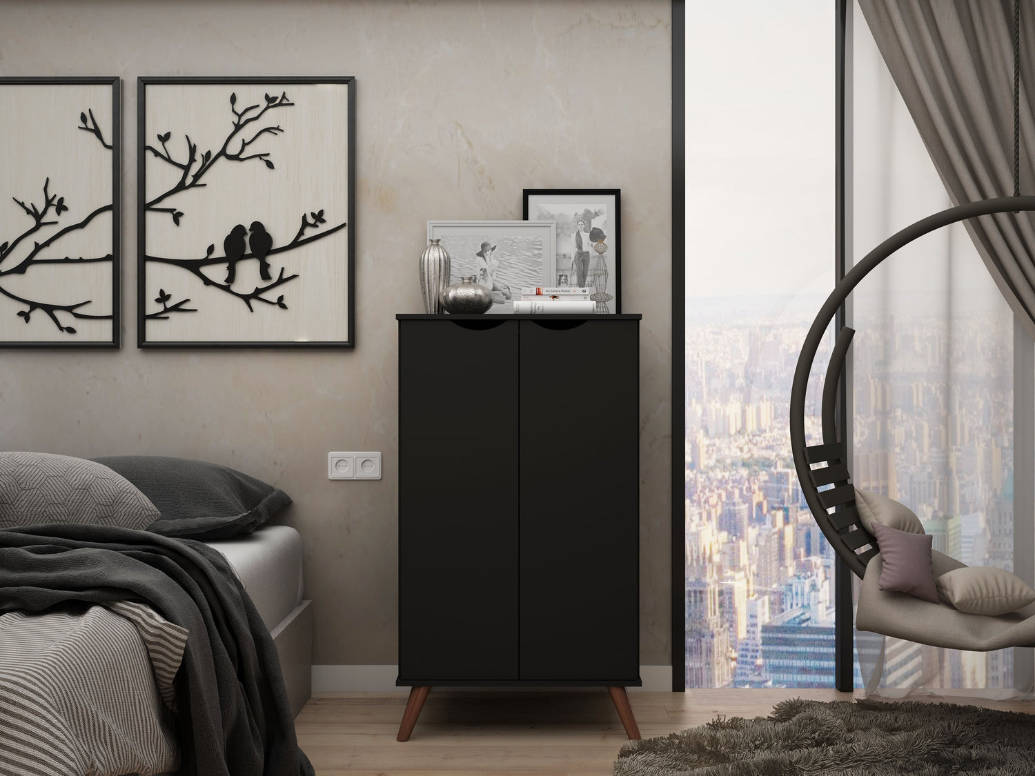 All style and sole, this piece encourages supports your shoe habit, with a smartly designed shoe closet that displays all of those extra pairs of shoes you've been tucking away and trying to fit into your closet. Show off your collection and keep your space streamlined without compromising on decor, with cabinet doors that perfectly conceal your accessories, proving that style and functionality can seamlessly meet in one beautiful design. Versatile and convenient, this piece works in a bedroom closet, in an unassuming corner with some framed photos up top or coupled up with a dresser for easy access.