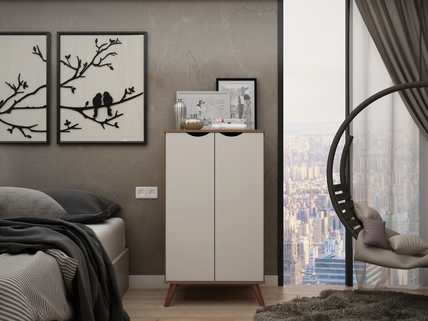 All style and sole, this piece encourages supports your shoe habit, with a smartly designed shoe closet that displays all of those extra pairs of shoes you've been tucking away and trying to fit into your closet. Show off your collection and keep your space streamlined without compromising on decor, with cabinet doors that perfectly conceal your accessories, proving that style and functionality can seamlessly meet in one beautiful design. Versatile and convenient, this piece works in a bedroom closet, in an unassuming corner with some framed photos up top or coupled up with a dresser for easy access.