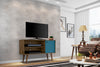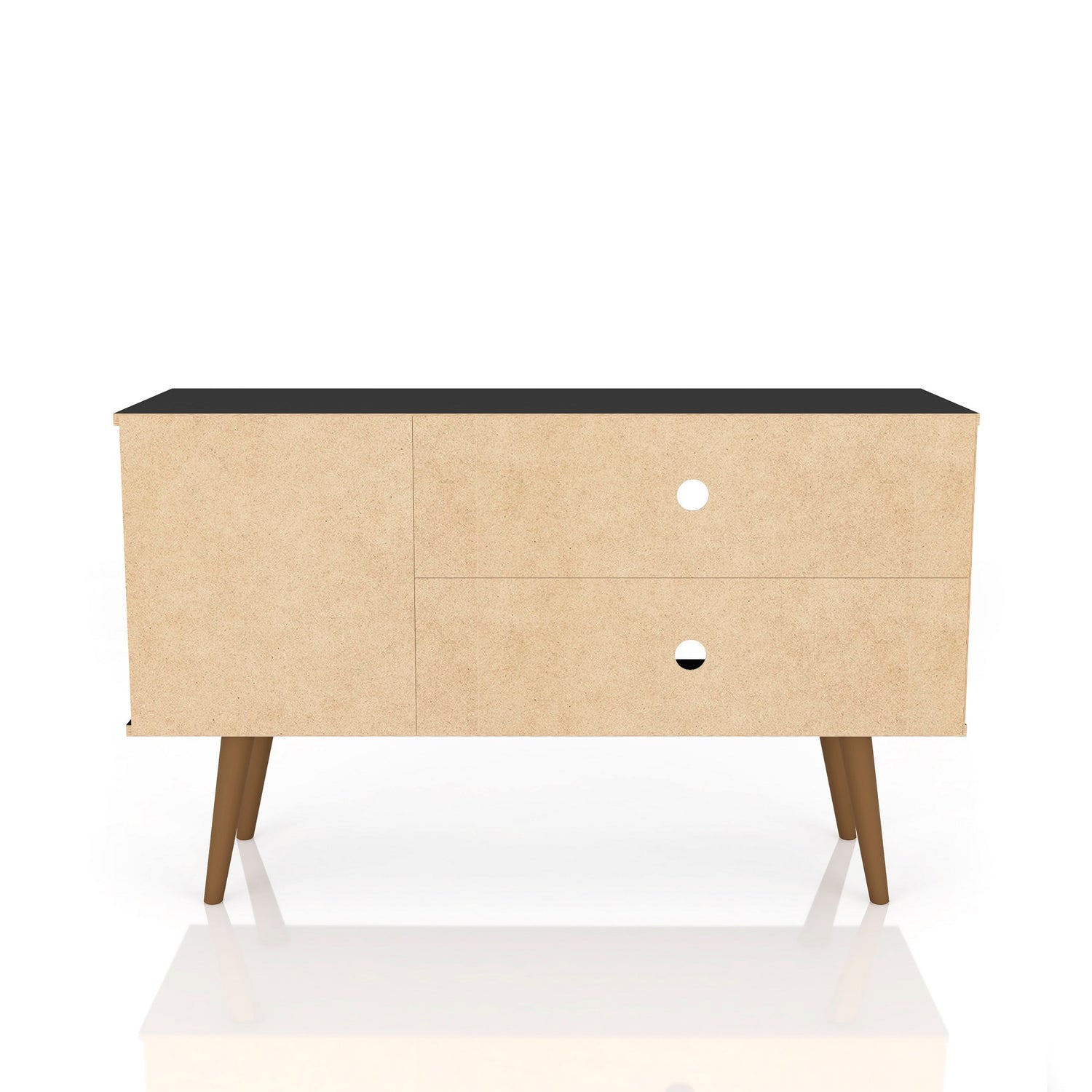 The Liberty 42.52 Mid-Century Modern TV Stand is the perfect blend of quality craftsmanship, brilliant design, and purposeful functionality. Featuring 2 open shelves, and one hidden cubby to create the ultimate entertainment center perfect for stashing DVDs, board games, electronics, and media accessories. Free standing and easy to maneuver, this piece will mix well with any decor and its artful grooves will create a statement in any space.