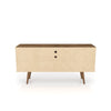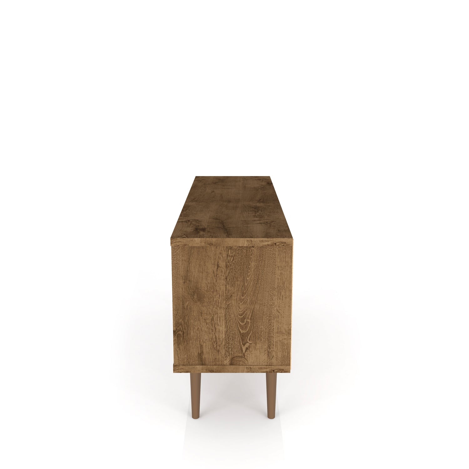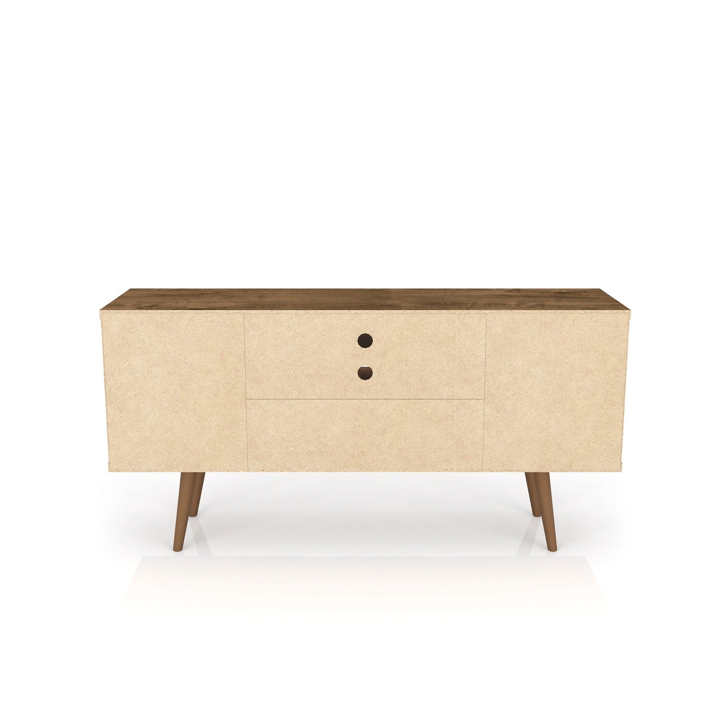 The Liberty 53.14 Mid-Century Modern TV Stand is the perfect blend of quality craftsmanship, brilliant design, and purposeful functionality. Featuring a large open compartment, one hidden cubby, and three center shelves to create the ultimate entertainment center perfect for stashing DVDs, board games, electronics, and media accessories. Free standing and easy to maneuver, this piece will mix well with any decor and its artful grooves will create a statement in any space.