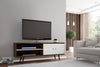 The Liberty 62.99 Mid-Century Modern TV Stand is a high quality, beautifully crafted, functional unit. Featuring two open shelves, and one large concealed compartment perfect for stashing DVDs, board games, electronics, and media accessories, this entertainment center is the ultimate gathering place and will create a statement in any space. Artful grooves mix well with any decor and splayed wooden legs add character and ease for moving. Available in white, white and rustic brown, white and aqua blue, white and yellow, rustic brown, rustic brown and white, and rustic brown and yellow.