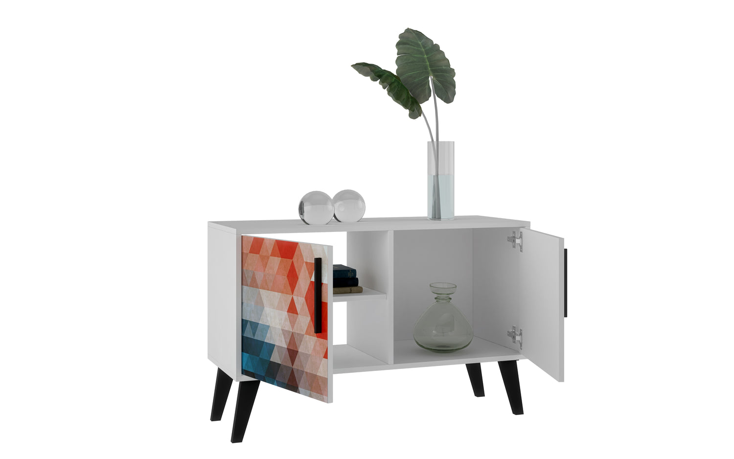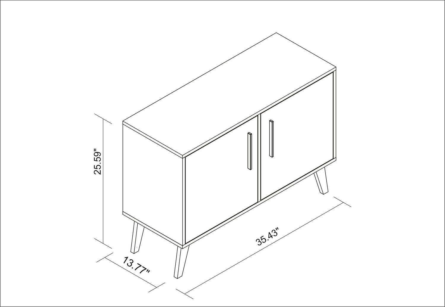 The Amsterdam cabinet is as versatile as it is functional and chic. Mid-Century Modern at its best, the cabinet also serves as a buffet, living room console, and makes it easy to entertain with space to display wine or snacks. Two doors conceal and pair of shelves on one side and a large open shelf area for storing books, toys, serving pieces, and more. Splayed legs and long handles keep this piece clean, sophisticated, and stylish.