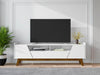 Elevate your living room or bedroom with our charming Mid-Century Modern Marcus Free Standing TV Stand. Crafted with love, it combines style and functionality effortlessly. With soft-close doors, a cable management system, and solid pine wood legs, this stand sets the stage for cozy movie nights and sweet moments together.