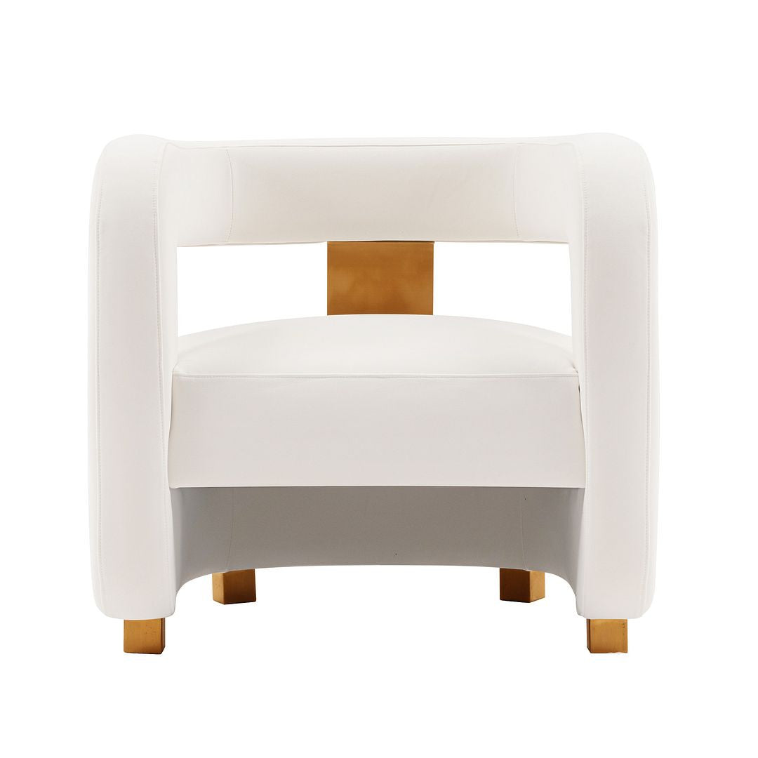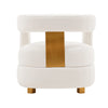 This chair flaunts a geometric floating open back with gold accent features, adding a touch of modern sophistication. With inner seat dimensions designed for comfort, it's the perfect spot to unwind.