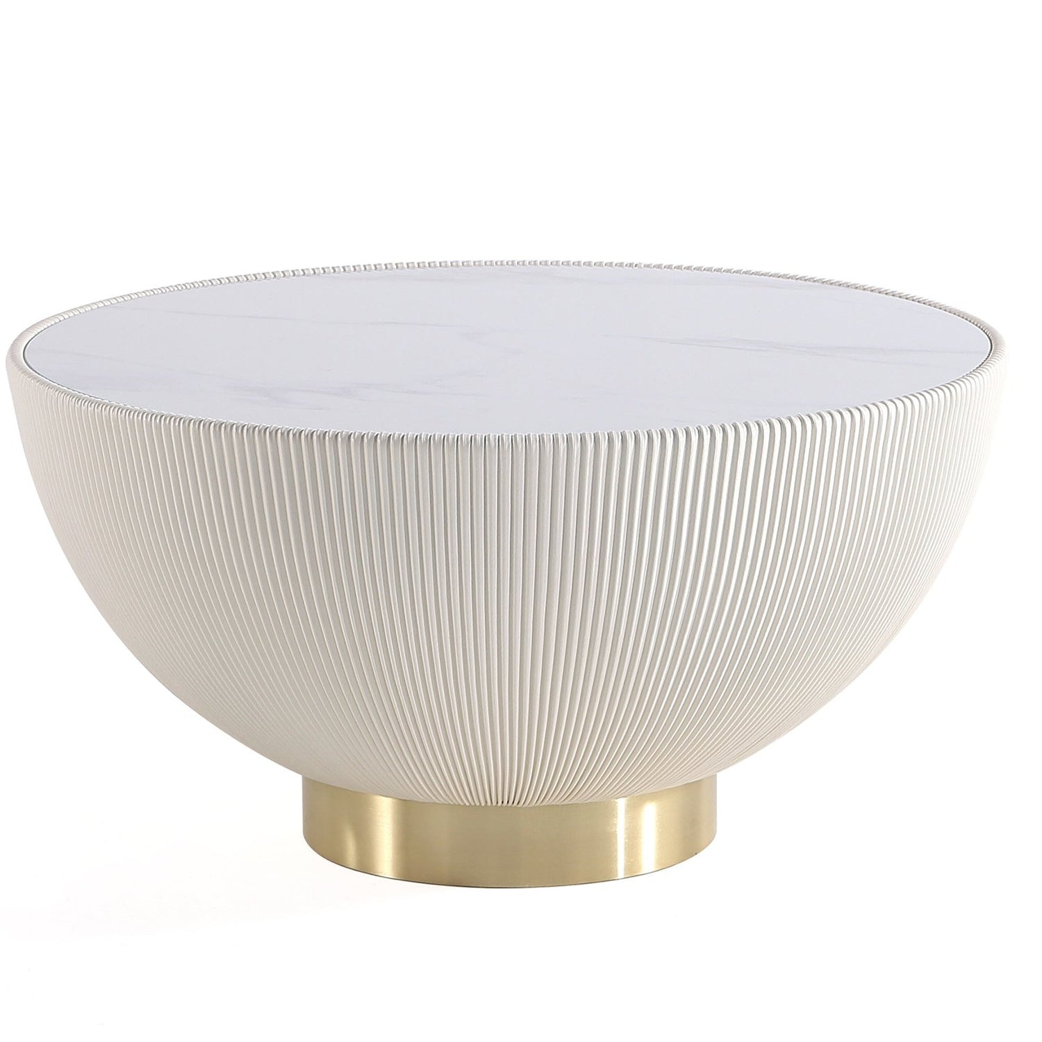 Introducing our striking Modern Anderson Coffee Table, a versatile addition to your living and dining spaces. Crafted with artistic flair, it features unique leatherette pleating and beautiful gold metal finishes that adds a touch of stunning design to your home decor. Built with a high-quality steel frame and feet, this table effortlessly combines style and durability. Pair it with our Manhattan Comfort End Tables to create a cohesive and stylish look, making your living and dining areas stand out.