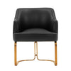 Elevate your dining or workspace with our chic Modern Reeva Dining Chair. Crafted with precision from high-quality Elm Wood and featuring stainless steel gold legs, it's the epitome of style and durability. Luxurious leatherette upholstery with high-density foam padding ensures comfort, while the unique floating design, adorned with vertical ribbed back stitching and geometrical gold base details, adds a touch of sophistication to any room. Arriving fully assembled, this chair is a hassle-free way to bring elegance and comfort into your space.