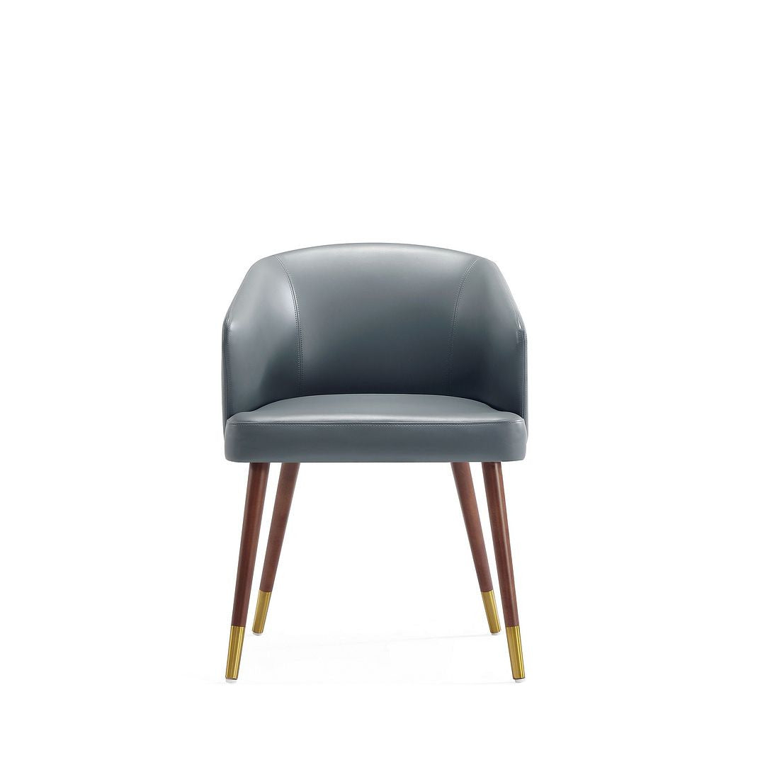 Introducing our exquisite Manhattan Comfort Reeva Dining Room Chair, where style meets comfort seamlessly. Upholstered in luxurious Leatherette, this chair provides a touch of elegance to any dining space. Its sturdy back, crafted from stunning solid beech wood in a mesmerizing geometric design, adds a captivating visual element, while the gold-tipped legs offer a glamorous finishing touch. Experience unparalleled sophistication and relaxation with this stunning dining room chair.