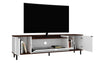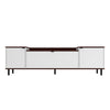 Entertaining at its best, the Mosholu TV stand is as artfully crafted as it is functional and versatile in design. A drooped center is perfect for displaying the television center stage, while two side sections are great for setting remotes, plants, or framed photos. Two concealed lower cabinets flank a dropdown closed shelf that create the perfect spaces for DVD players, magazines, books, toys, and beyond. A living room mainstay, this piece instantly draws family and friends together.