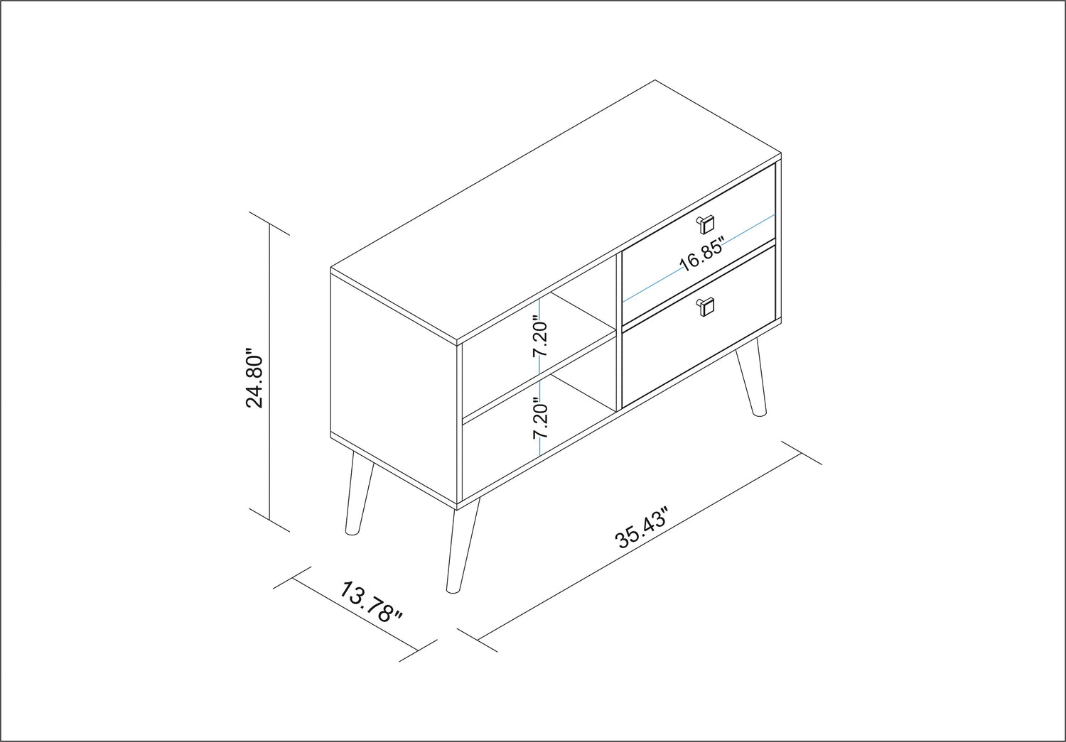 Looking for a practical piece of furniture? The Dalarna TV Stand will fit right into your Living room, Office, and Bedroom! Made of high quality MDP with colorful finishes. Its unique design includes splayed legs and square knobs. Perfect to use as a decorative piece and display collector items, books, pictures and more! Dalarna includes 2 drawers and 2 open shelves.