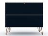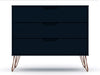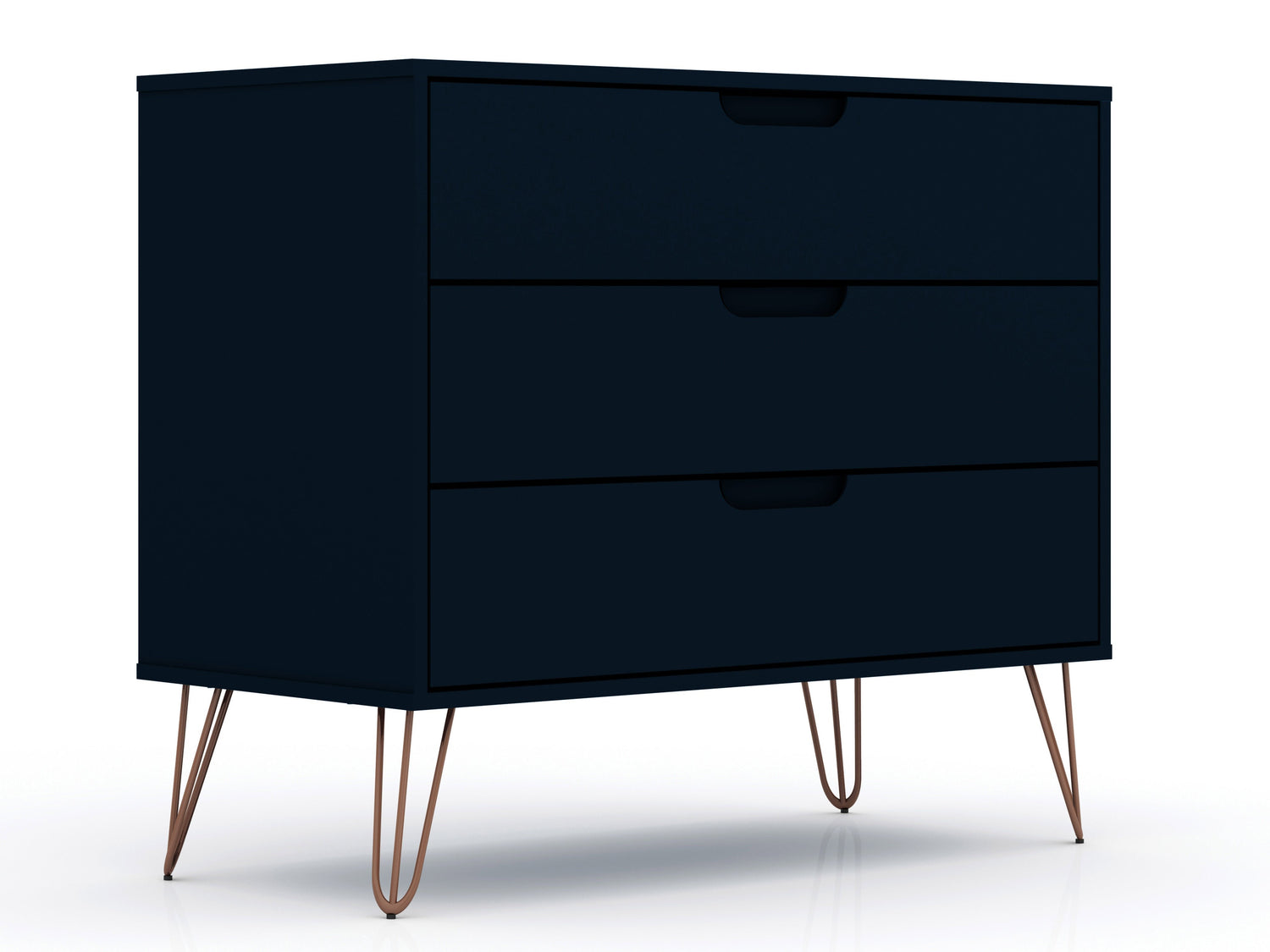 The Rockefeller dresser is the perfect accompaniment to any bedroom space, with ample storage and minimalistic Mid-century modern style. Cutout handles keep the piece feeling fresh with three drawers made easy for stowing away clothing, personal items, and beyond. A display top allows for sharing favorite framed family photos, travel trinkets, perfume trays, or a decorative lamp. Set it under a mirror or painting to complete your space with this instant bedroom focal point.