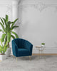Utterly captivating. Elegance meets coziness in this exquisite accent chair. With a wraparound back, deep vertical channeling, and extra-plush padding, the shell-style seat surrounds you in comfort. Sumptuous velvet upholstery is soft to the touch with lustrous depth and show-stopping color. Set on angled stainless steel legs with gold tone finish, this chair gives style a whole new meaning.