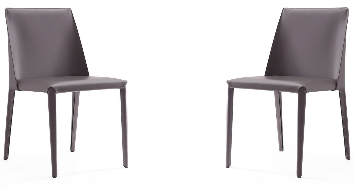 An elegant twist to a classic design. The Paris Upholstered Dining Chair is a welcoming modern set with a curved shape that makes it particularly comfortable. The chair is entirely covered in leather, offering a sleek well tailored appeal. Cleverly constructed to fit any home's decor from industrial and coastal, to glam and boho chic.