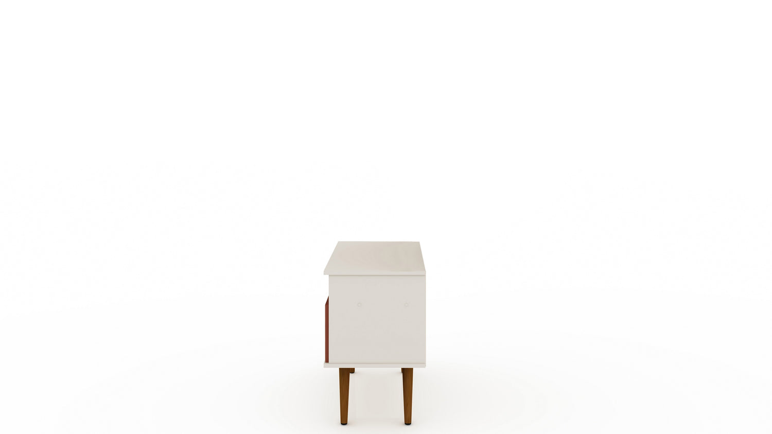Part dresser, part living room entertainment focal point, the Tribeca TV stand is Mid-century modern at its best, and is as versatile as it is functional. This piece couples as a dresser and easily showcases your television, tucking away any media accessories in the concealed shelving space, while an open shelf perfectly fits a DVD player or laptop. In the bedroom or in the living room, stow throw blankets, clothing, or table linens, this piece goes easily from space to space and blends with existing decor to create a statement. Splayed legs and clean lines make for a seamless look.