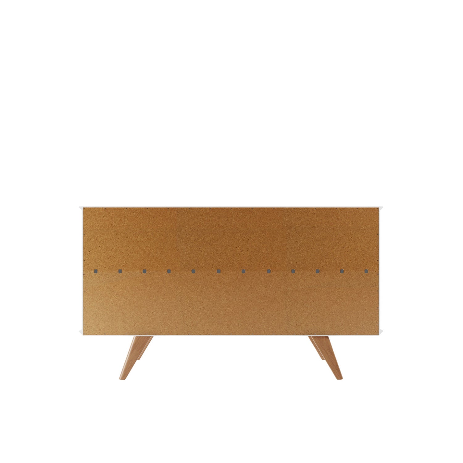 Add storage space to your dining area with the Tudor sideboard that celebrates Mid-Century design an style in all the right ways. Functional and beautifully designed, it doesn't compromise your space in style or practicality. Splayed legs add quirky classic feels, while curved cabinet doors conceal four large shelving area with ample space for tucking away dishes, tablecloths, and all your dinner party essentials. Complete your home with this focal point that blends and elevates any space with streamlined minimal design and maximum functionality to beautifully pair with any existing decor.
