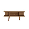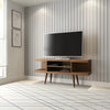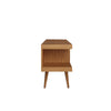 The Utopia 53.14 TV Stand melds quality craftsmanship, brilliant design, and modern functionality to create a seamlessly streamlined, and free standing entertainment center. Statement legs and corner open storage sections bring character to a space, while three airy shelves are perfect for storing all of your entertainment accessories. Available in off-white and maple cream and white gloss and maple cream.