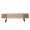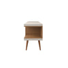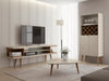 The Utopia 70.47 TV Stand melds quality craftsmanship, brilliant design, and modern functionality to create a seamlessly streamlined, and free standing entertainment center. Statement legs and corner open storage sections bring character to a space, while three airy shelves are perfect for storing all of your entertainment accessories. Available in off-white and maple cream and white gloss and maple cream.
