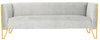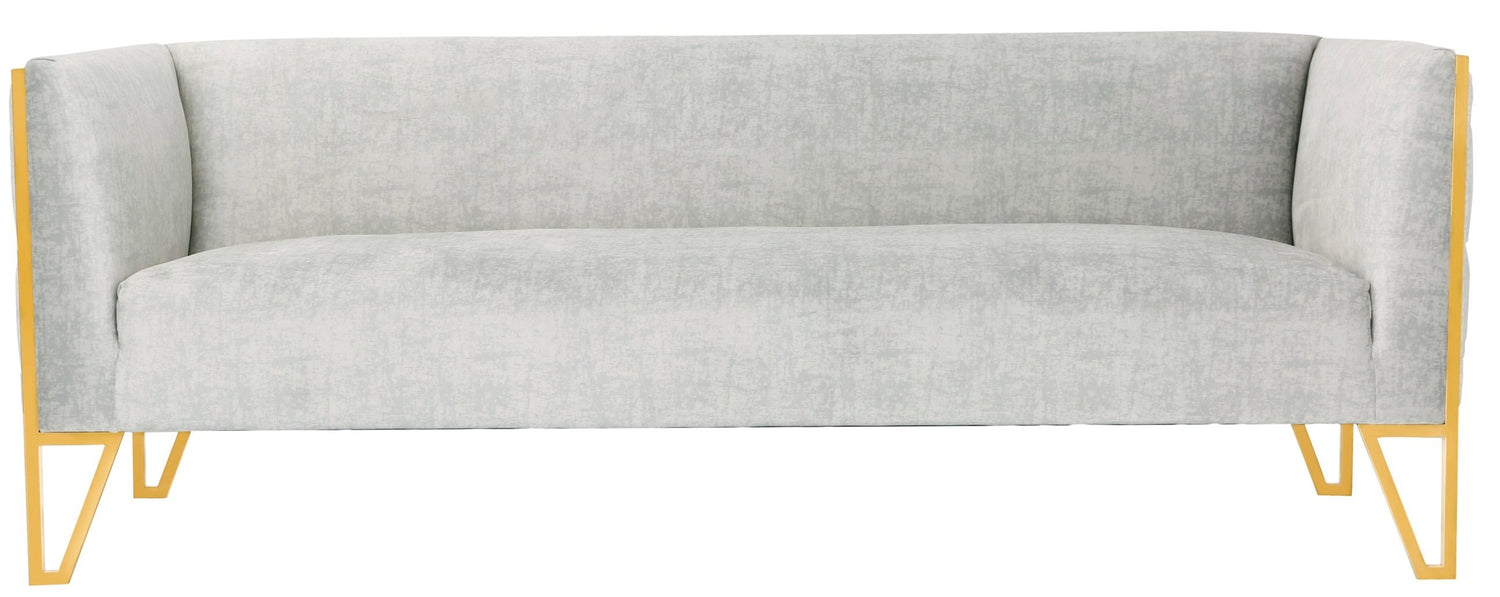 Dynamic. Contemporary. Upscale. Freshen up your living space with the Vector Sofa. Featuring a subtly geometric frame and open cutout feet, the design combines clean architectural lines with posh texture for an eye catching look. Rows of deep button tufts accentuate either end of the sofa, emphasizing the plush cushioning beneath its tailored velvet upholstery. It’s luxe polished brass finish perfects the look. Coordinate with the matching Vector Accent Chair for a stylish update to your decor.